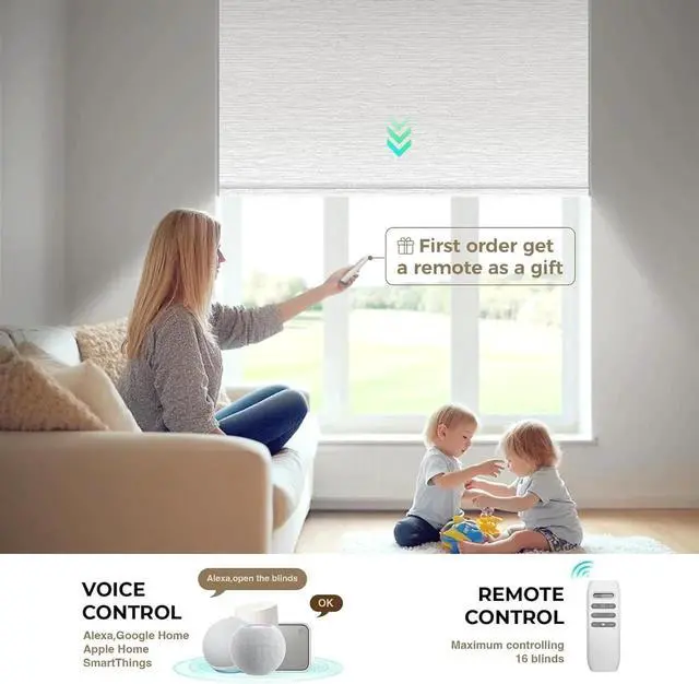 Save Energy, Save Money, Better LifePowered by a rechargeae motor, these automatic inds offer you the utmost convenience. You can sily plug it in when needed or, even better, use the optional solar panel for charging, creating an energy-efficient and cost-effective life. The 16-channel remote can control at most 16 inds separately or simultaneously. You can get a remote for colimentary for the first order.