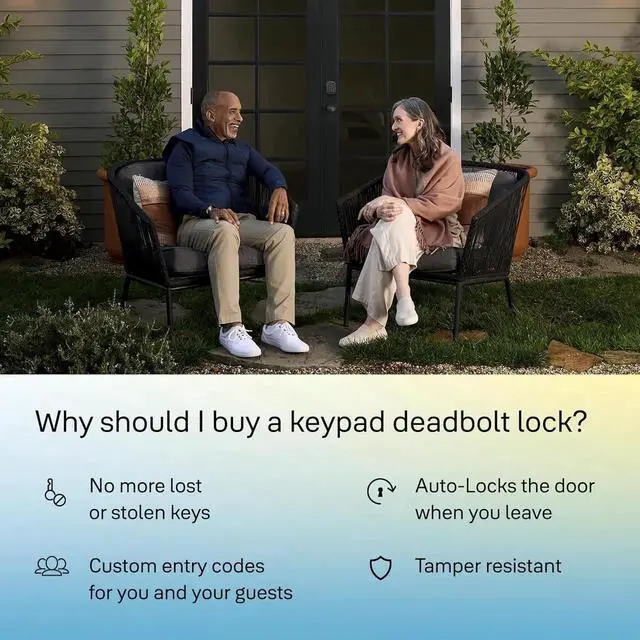Access your home without the hassle of keys. This Keyless Entry Deadbolt has a simple DIY installation process that doesnt require any professional help, and theres no in-app set-up needed. Create and store up key-free entry codes directly in the lock itself, and share secure and convenient access with friends, family, housemates, caretakers, and more. The backlit keypad ensures that you can easily read its numbers for entry at any time of day. With its sleek design and low profile it looks great on any door while bringing trusted security to your home.