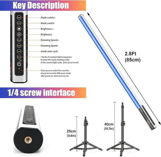 Wide Application The music video tube lights are light weight, they can be handheld. RGB tube lights are widely used for DJ lighting, Dance Club, studio, photography lighting, living and selfie. And popularly placed in game room, living room, kid bedroom, movie room, bedroom, college dorm, office, bar and hotel. Soft lighting, romantic atmosphere, make your life more colorful