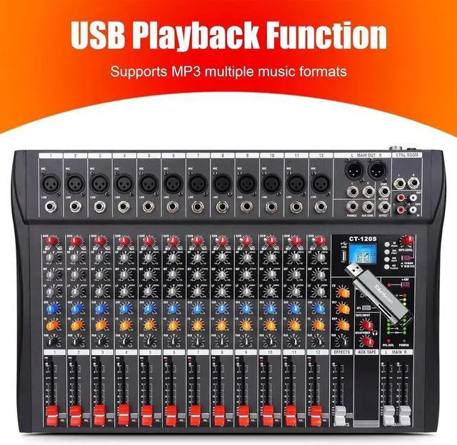 If you have any questions, please feel free to contact us, we are more than happy to help you and strive to provide excellent customer servicefalse- 12-channel professional mixersupport XLR microphone + instruments + Bluetooth + RCA multi-channel mixed input, easy to deal with band performances / conference hosts / live recording and other complex scenarios, a machine to replace the clutter of equipment.