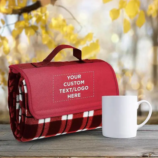 Branding Excellence - Boost your brand's image by offering this personalized blanket. Whether for cherished clients, loyal employees, or impactful events, it's a statement of quality. falseEffortless Mobility - Our picnic blanket's ingenious design, featuring a grid pattern and woven handle, ensures seamless transport. The hook-and-loop closure adds ease to your outdoor endeavors. falseEvent Glamour - Elevate your upcoming corporate soirée, grand opening, or birthday bash with this stunning blanket. Its versatility and allure make any occasion truly memorable. false- Fleece
