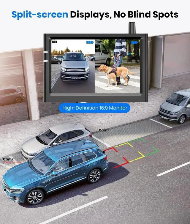 Day & Night: This wireless backup camera for car with a 5-inch HD 1080P 1080P Anti-Glare Monitor, which is still clear in the sun during the day and can accurately image in low-light environments at night. Supports dual-split screen display, which can view two perspectives at the same time, making reversing, towing, and parking more secure. Even in a completely dark environment, it can provide clear images, making parallel parking and precise reversing easyStrong & Stable