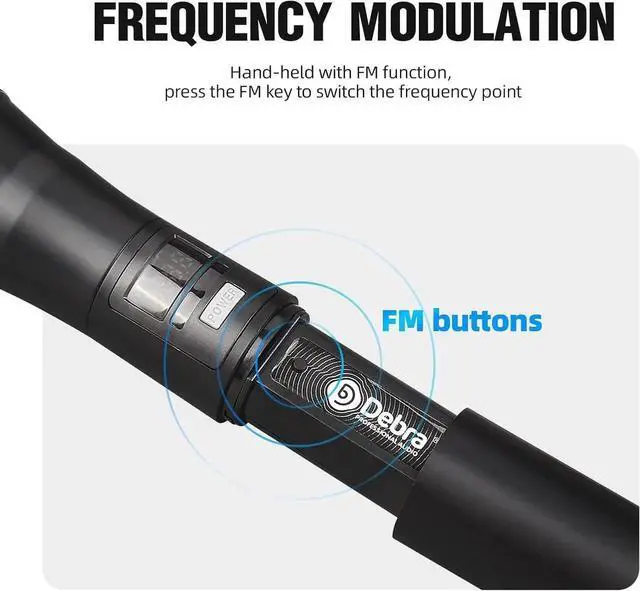 - 4*16 adjustable Channel. This microphone system automatically pairs the frequency when it is turned on, and the receiver actively tracks the frequency point. Stable connection even over long distances. In addition, the handheld microphone has an FM function, and you can switch the frequency point by pressing the FM key. The operation is simple and convenient, no matter the novice or the proficient can use it with confidence.
