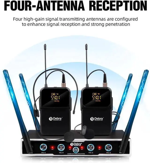 - The wireless microphone system is equipped with four pure copper core antennas, the signal reception is more stable, and the anti-interference ability is strong. 4*16 adjustable channel frequency, it make avoid most signal interference. The signal coverage is wide, and the effective operating distance in open space is up to 260 feet. Moreover, the four-day antenna can be retracted freely without taking up space, which is convenient for storage and carrying.
