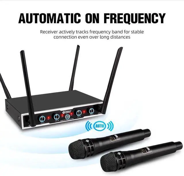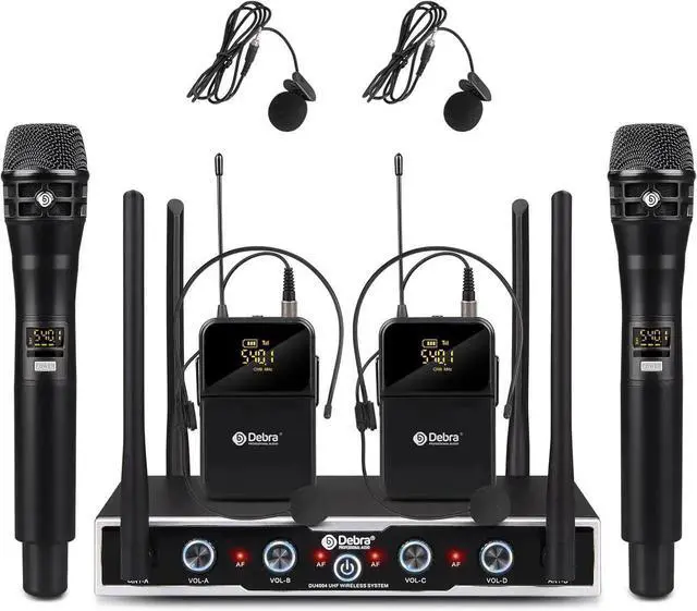 Packing List: Receiver*1, Handheld Microphone*2, Bodypack*2, Lavalier Microphone*2, Headset Microphone*2, Power Supply*1, 6.5 mm Audio Cable*1, Anti-slip Ring*2, Manual*1. - This wireless microphone adopts advanced UHF anti-jamming chip, which can effectively block noise and restore good sound quality. There are also high-quality pickup microphones, which can restore beautiful sounds and make the overall sound effect smooth, natural, true and accurate.