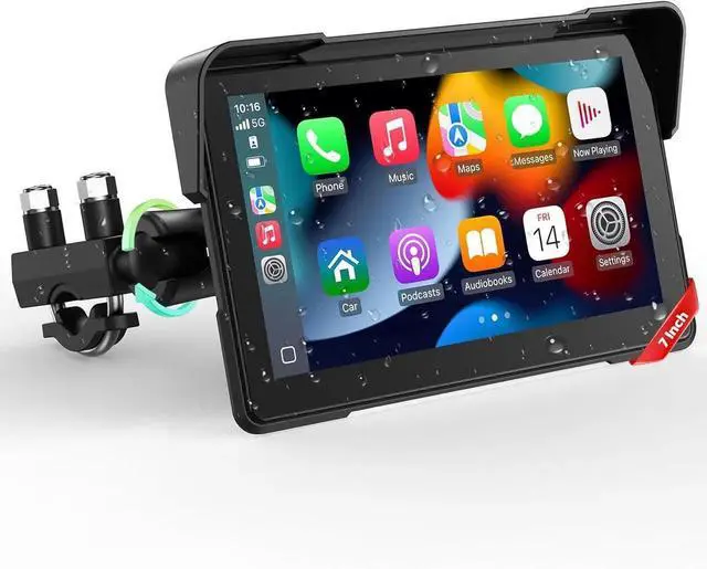 - IP67 Waterproof and Anti - glare DesignWant to ride worry - free in any weather? Our carplay moto is IP67 waterproof and works great in temperatures from - 4 to 158. No need to worry about different environments! And with the anti - glare design, when the sun is shining directly, the sun visor prevents screen glare, so you can see the route clearly.