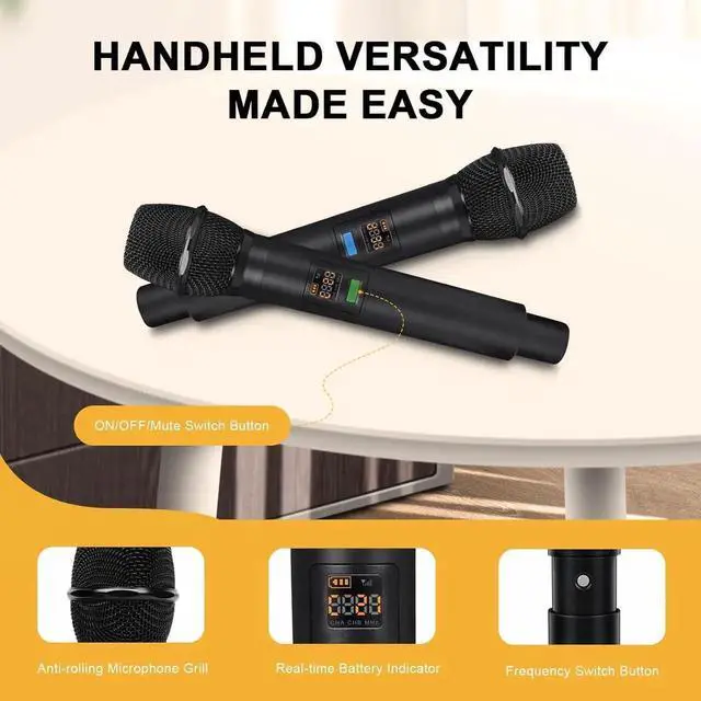 - EASY PORTABILITY: Our compact half-rack cordless mic set is designed for easy portability and simple setup, enhancing audio delivery in any settingideal for home karaoke, parties, DJ events, weddings and churches. The receiver's built-in antenna of the microfono inalambrico eliminates the need for frequent assembly and disassembly, making it easy to carry and install, and contributes to smooth operation