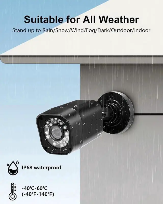 5 HD CCTV Camera Security System: Enjoy clear imaging while eliminating monitoring ind spots. Including 4 cameras, the 8-channel system provides ale space for additional cameras. 4 packages of 60FT BNC caes provide video and power for your cameras.