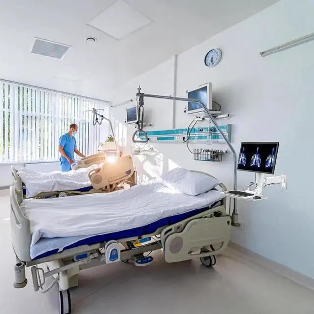 Medical Wall Mount Workstation With Folding Keyboard Tray And Scanner Holder For 17"-35" ScreenScreen height adjustable