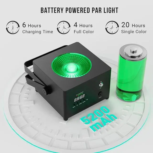 Compact Design: The rechargeable par light utilizing advanced RGB COB (Chip On Board) technology to house a powerful LED engine in a compact space. This results in a high-output, smooth color-mixing LED Par with no RGB shadows. It's designed for both mobile and permanent wash lighting applications, including stages, clubs, dance floors, and churches.