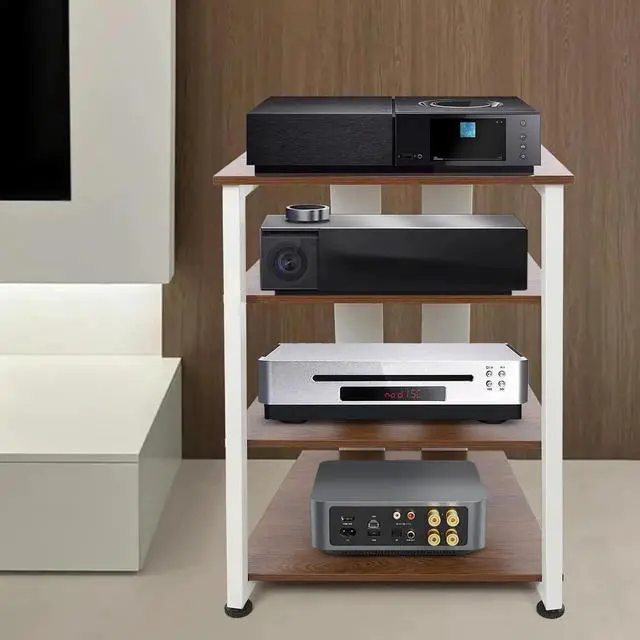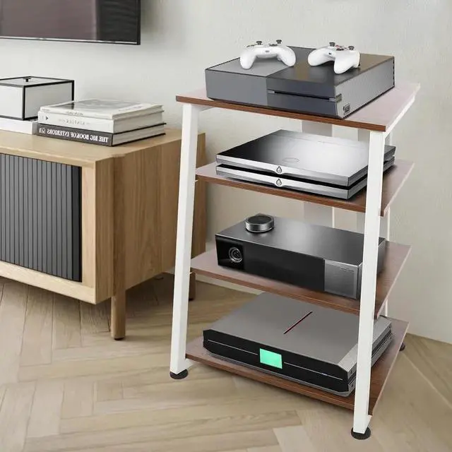 It can accommodate audiovisual equipment, TV accessories, CD changers, receivers, woofers, DVD players, game consoles, amplifiers, speakers, record players, etc. It can be used as a media rack, or as a multi-functional storage shelf in a home, office, or bedroom. Specification