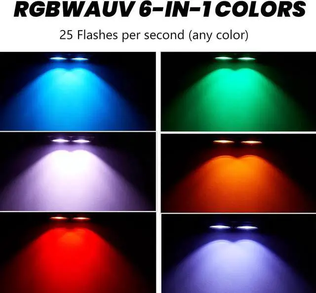 - HOUSING MATERIALRGBWAuv 6 in1 COB Par Light Material of the strobe light: Die-cast aluminum housing.