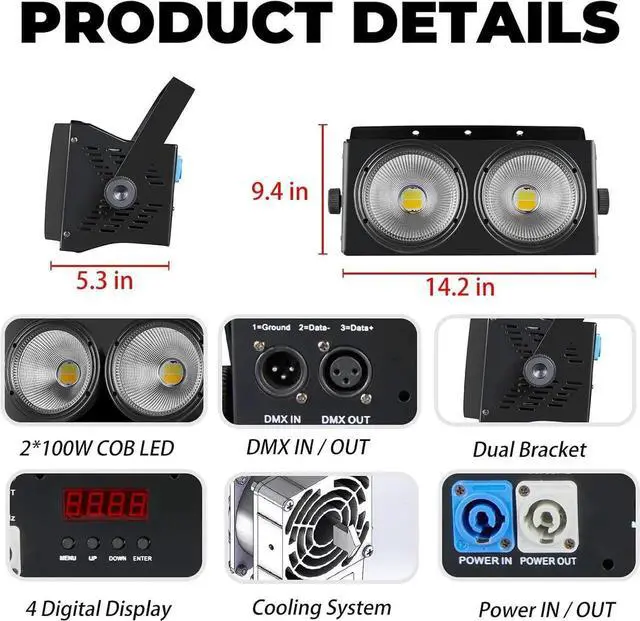falseSERVICE GUARANTEEThe strobe projection lamp has a high-quality cooling system to avoid damage to the LED lamp due to overheating (instructions are attached). If you have any questions, please contact DJXFLI after-sales email without hesitation. We will reply within 24 hours and assist in solving them. false- HIGH CRI & POWER COB LIGHT SOURCE2x100W 3000K stage spotlight creates a great effect and make the light color pure without unsightly color separation shadows, which provides romantic and passionate atmosphere for wedding parties or any ceremonies.
