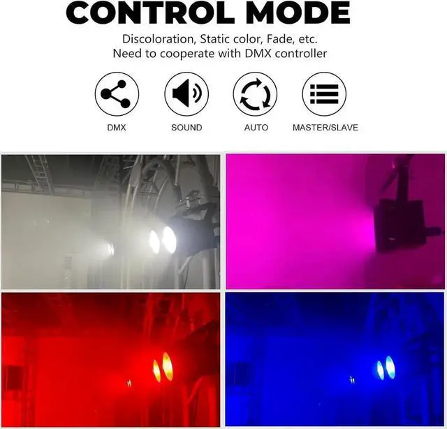 - DMX512 CONTROL COB PARTY LIGHTThe par led lights supports 2 modes, Master/Slave, Auto, it could strobe too. It can independently control a single light bead or set the signal retention function. When the signal is disconnected, the light remains in the unexting uished state and automatically recognizes the master and slave functions.