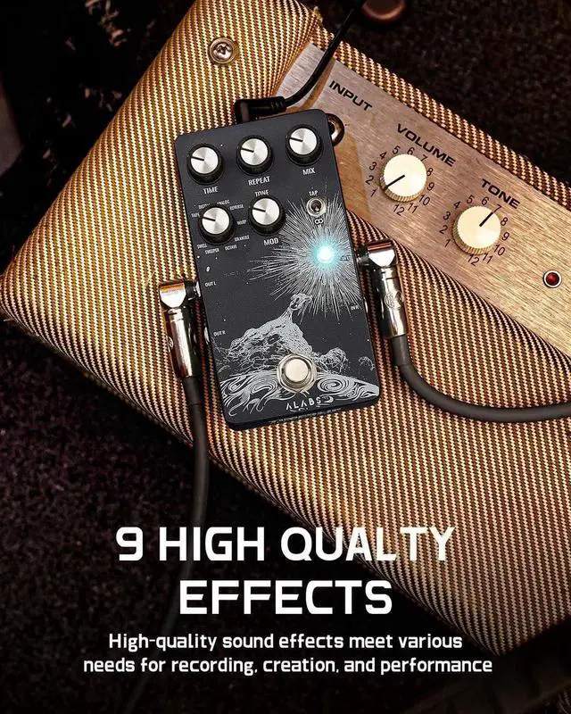 - Advanced Audio Algorithm Engine: Delay pedals for electric guitar powered by ALABS' Wizard Audio Virtual Engine, utilizing high-precision dynamic forward virtual circuit modeling technology, running on a high-performance 32-bit floating-point digital signal processor (DSP). Elevate your performances, recordings, and musical creativity with a delay pedal that combines innovative technology