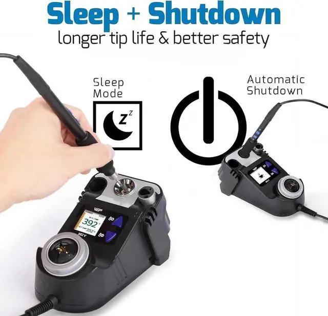 Automatic Stand-by Mode: when in the sleep mode, if the precision solde station is not wakened up within 4 minutes, it will automatically cut off the heating elements power and enter the standby mode; extends the heating elements lifespan and reduces risks when unattended