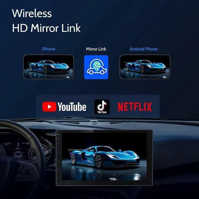 - Wireless Mirror Link Function: The apple carplay dash mount supports smartphone wireless mirror link functionality for both Android and iOS devices. It can sync some video apps and play Youtube, TikTok, and other videos.