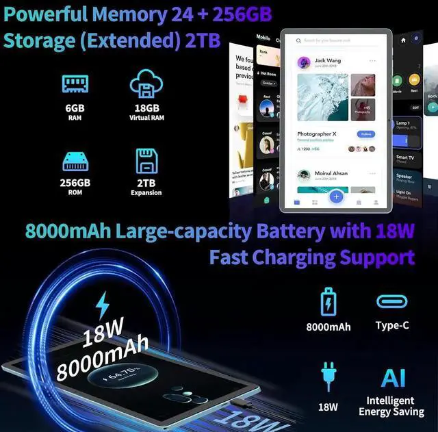 RAM: Settings System Memory Expansion/Memory Expansion Expanded Memory 6GB/Expanded Memory 18GB. Built-in 8000mAh high-capacity battery, combined with an efficient operation and energy-saving system, the tablet can run for a long time. GMS-certified tablet ensures smooth app downloads and a lag-free experience