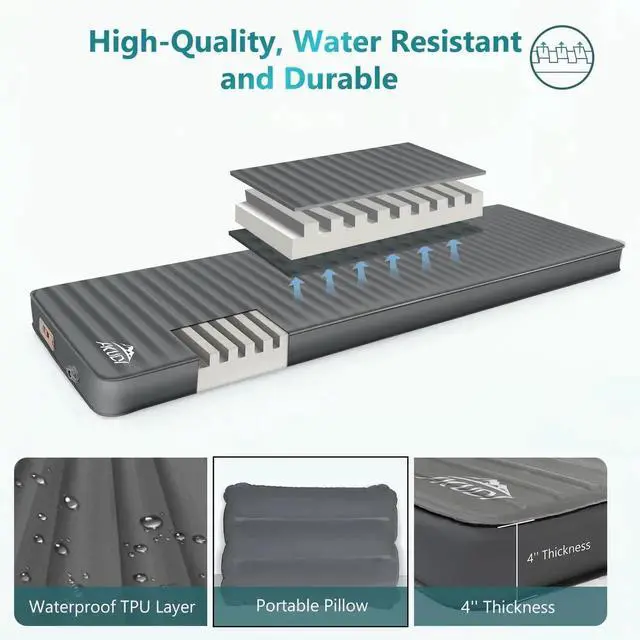 Designed for year-round use, it ensures a comfortable sleep no matter the season, whether you're traveling with family or friends. false- Effortless SetupThe AKUDY foam sleeping pad comes with a built-in electric pump, enabling one-touch setup and rapid inflation/deflation. It allows you to use it with ease, fully enjoying the joy of your camping adventure.