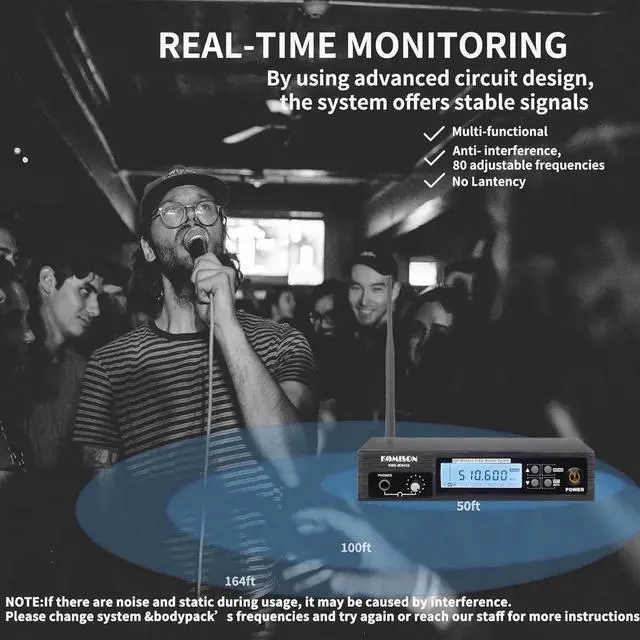 Quality and technology: With advanced circuit design and upgrade chips to improves the signal-to-noise ratio, This in ear monitor system offers clear sound and high fidelity with no latency, while provide stable signals, too