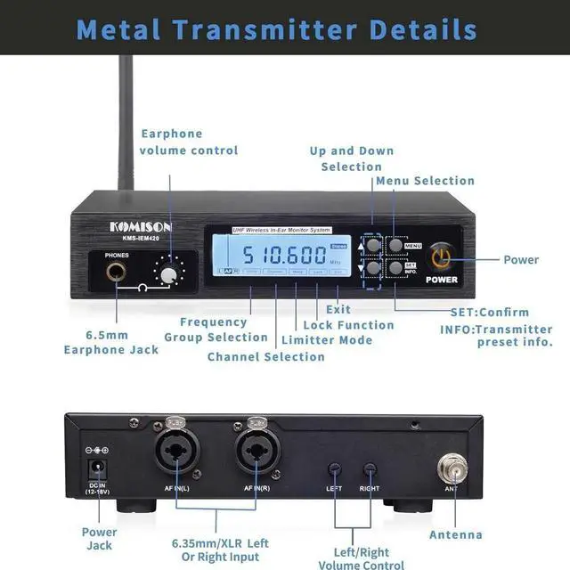 - Quality and technology: With advanced circuit design and upgrade chips to improves the signal-to-noise ratio, This in ear monitor system offers clear sound and high fidelity with no latency, while provide stable signals, too