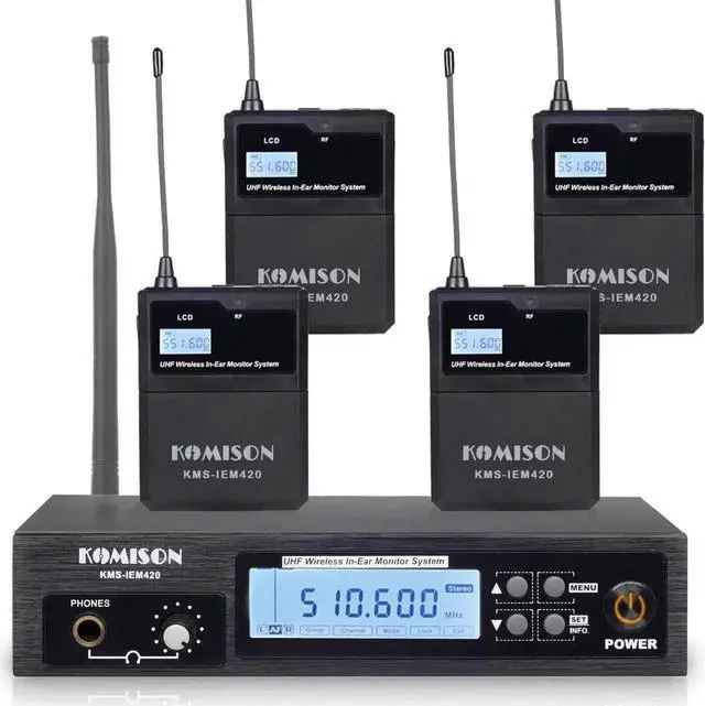 . (NOTE: If there are noise and static during usage, it may be caused by interference. Please change other frequencies and try again)falseWhat you get: 1 x UHF wireless transmitter, 4 x Bodypack receiver, 4 x In-ear earbuds, 1 x Power adapter, 1 x Antenna, 2 x 6.5 mm to 6.35 mm cable, 1 x
