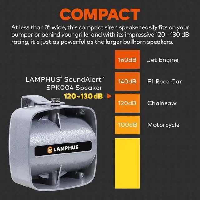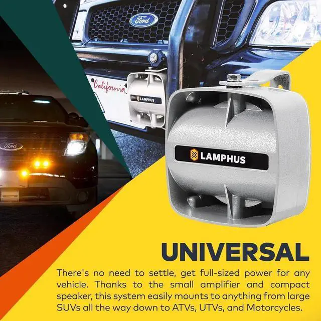 ![Alt view image 6 of 7 - SoundAlert 100W Police Air Horn Amplifier Kit [120-130 dB Compact Speaker] [Manual Control or Stock Horn Bybass] [10 A Fuse Protected] Electronic Air Horn for Emergency Vehicles Trucks Cars](https://c1.neweggimages.com/productimage/nb640/C2GMS25121903W1L53E.jpg)