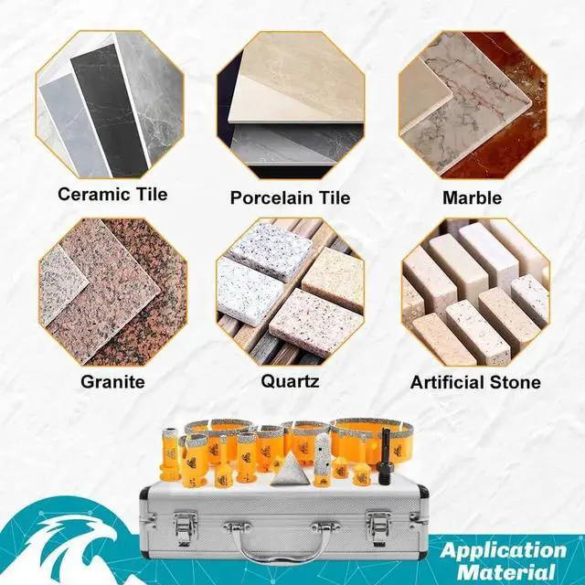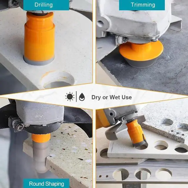 What specific types of stone are these drill bits used for? Mainly for soft stones like tile marble granite. Use wet on hard concrete. Not for wood or metal like reinforced concrete and steel pipes. For glass, it is recommended to buy a drill bit that is specifically designed to drill glass instead of this.