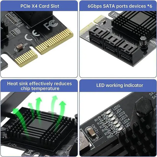 - Product chipBuilt-in ASM1166 chip, which improves the stability and compatibility of this PCIE to SATA card. This card also has a heat sink for long-lasting high temperature resistance.