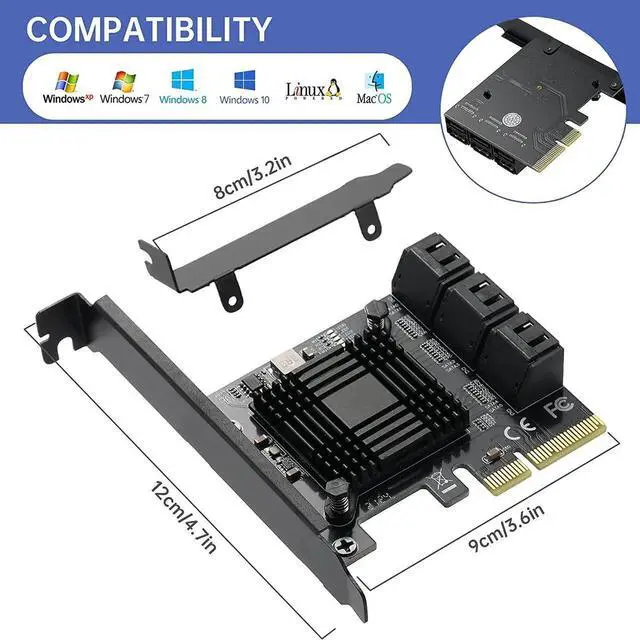 - Extensive compatibilitySupport Windows XP / 2003/7/8/10 (32/64bit) / MAC/ Linux and other operating systems. The PCIE SATA card is compatible with PCIE X4, X8, X16 slots.