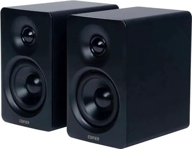 [Aluminum Speaker Stands Bundled] The M60 comes with a pair of aluminum speaker stands, designed at a 15-degree angle, which reduce sound distortion by directing audio directly to ear level when placed on a desktop