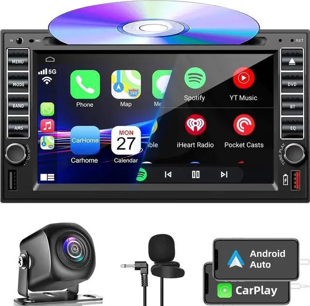 Bluetooth: Answer/make calls and be hands-free with no distractions. The double din car stereo with bluetooth apple carplay included microphone picks up your voice and the speakers let you hear the caller. You can also play and control your music and apps like Spotify/Pandora as well as iTunes and Apple Music Subscription. Siri will be your DJ.