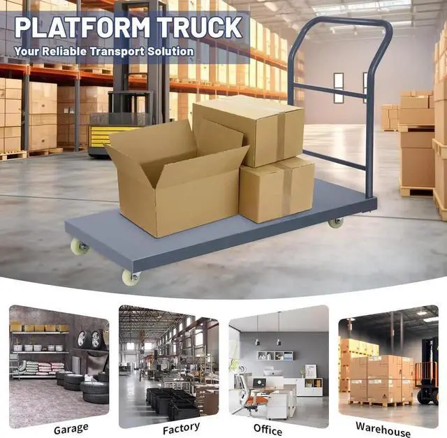 Multiple UsesThis flatbed cart is perfect for a wide range of applications, from warehouses and garages to gardens and offices. Whether youre moving heavy tools, furniture, or supplies, its durable construction and high weight capacity make it ideal for any task.