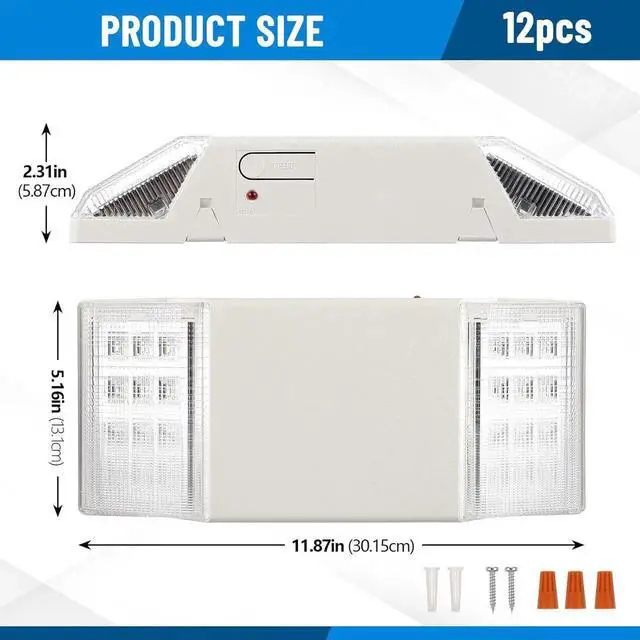 - Sufficient Quantity: receive an ample set of 12 emergency lights, each designed for wide coverage, with dimensions of 11.81 x 5.12 x 2.28 inches; Equipped with two adjustable LED heads, these emergency lights for business and home settings ensure robust lighting across multiple areas during power