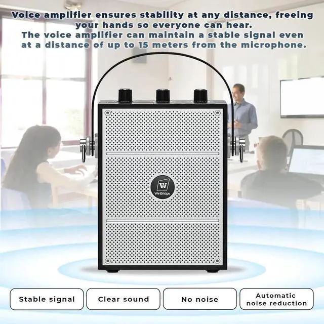 Amplifier: This powerful 40-watt amplifier delivers louder, clearer, distortion-free sound. It covers an area of 18, 000 square feet and can accommodate a public classroom of more than 200 people. Its consistent and reliable performance amplifies sound perfectly so that every listener can be heard clearly and effortlessly.