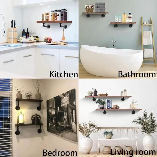 Rustic pipe shelving brackets create a sense of farmhouse and industrial to your home.