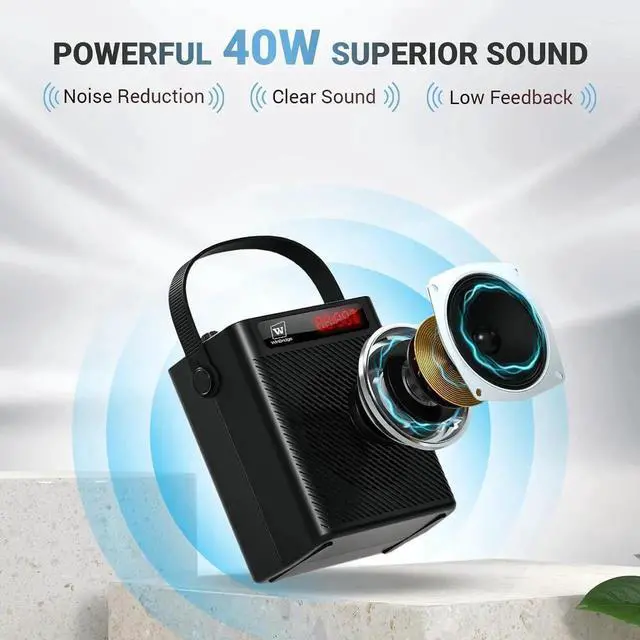 WE HIGHLY RECOMMEND USING A 5V/3A CHARGER FOR OPTIMAL CHARGING SPEED AND SAFETY WITH THIS PRODUCT- Powerful and Clear Sound with Low FeedbackThis 40W voice amplifier is engineered for high-performance and low-noise, delivering crisp, louder vocals without the hassle of feedback. This S95 mics and speaker Ideal for teachers classroom, trainers, tour guide, small parties, meeting and more. This portable pa system ensures your voice resonates clearly. Both the speaker with microphones volumes can be independently adjusted to meet your specific needs in both indoor and outdoor settings.