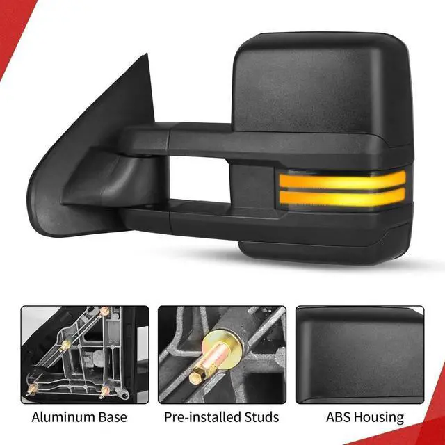 Aluminum Studs Triangle Base The towing mirrors feature a classic triangle construction, durable aluminum base, and pre-installed studs for a stable installation on your vehicle