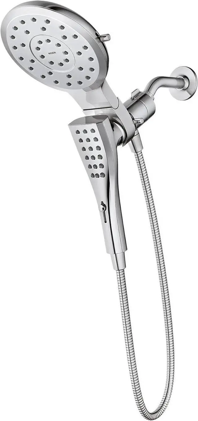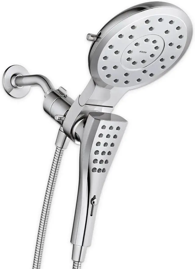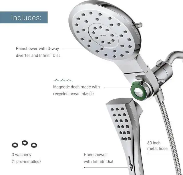 The Verso Combination Shower featu Infiniti dial offers both a rainshower and handshower in one sleek design while providing a customized shower experience. The new Infiniti dial featured on both showerheads provides unlimited spray and coverage options so you can find the perfect shower to meet your needs. Simply slide the dial to seamlessly switch between spray modes with no pause in experience. The rainshower showerhead also can pivot for more shower spray angle options. The Combination Shower provides a 3-in-1 design. It is easy to install, as the shower head easily screws on to the existing shower arm in your bath. The rainshower and handshower can each run separately or together for a customized experience. For added convenience, the handshower includes s Magnetix technology that includes a powerful magnetic dock for easy release of the handshower and a secure snap back into place n when eyes are closed. It is backed by s limited lifetime warranty for your long term peace of mind.