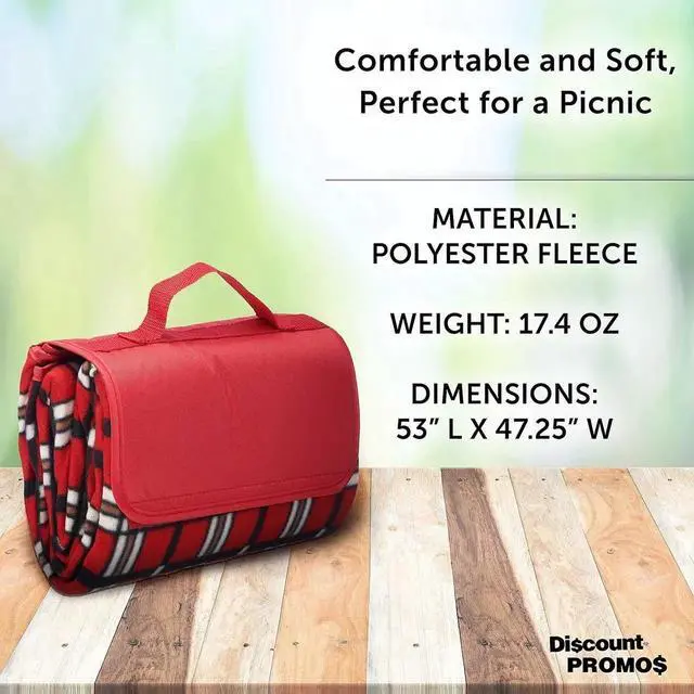Branding Excellence - Boost your brand's image by offering this personalized blanket. Whether for cherished clients, loyal employees, or impactful events, it's a statement of quality. falseEffortless Mobility - Our picnic blanket's ingenious design, featuring a grid pattern and woven handle, ensures seamless transport. The hook-and-loop closure adds ease to your outdoor endeavors. falseEvent Glamour - Elevate your upcoming corporate soirée, grand opening, or birthday bash with this stunning blanket. Its versatility and allure make any occasion truly memorable. false- Polyester Fleece