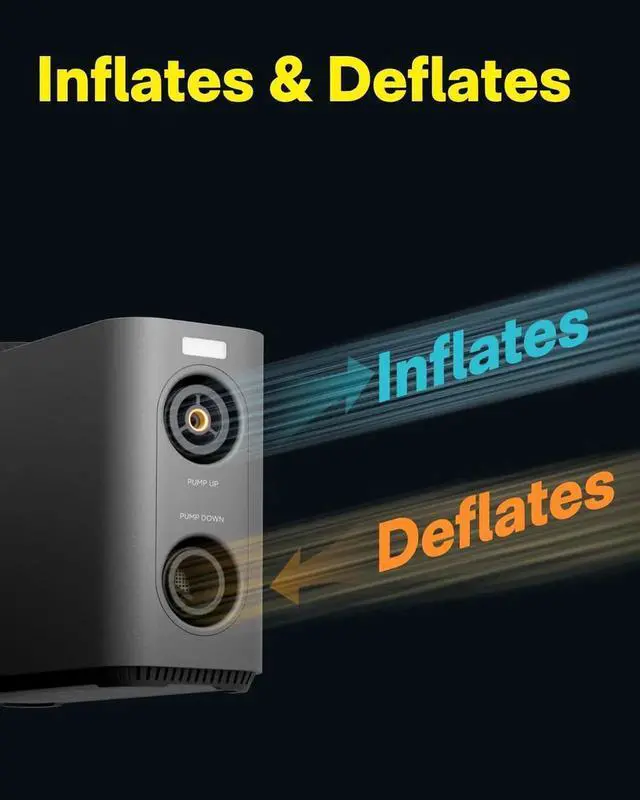 FAST PUMPING & HIGH PRECISION: Powered by an advanced motor, our electric air pump accomplishes pumping tasks quickly. It can inflate a tire from 29-35 psi in 1 minute ( tire specication: 205/55 R16), a kayak in one minute, and a paddle board in fteen minutes. With a high-precision pressure sensor and smart chip, the air pump automatically stops when it reaches the desired pressure. This ensures accurate and reliable inflation
