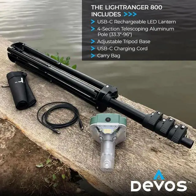 - Quick & Efficient Charging: Recharge quickly from 0 to 100% in just 4 hours via USB-C. Includes a rechargeable camping light with stand, adjustable pole, tripod base, carry bag, and charging cord.