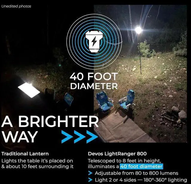 Exceptional Illumination: Our LightRanger LED Lantern delivers 800 lumens, illuminating a 40-foot-diameter area, providing superior visibility for camping, backyard BBQs, and emergency kits.