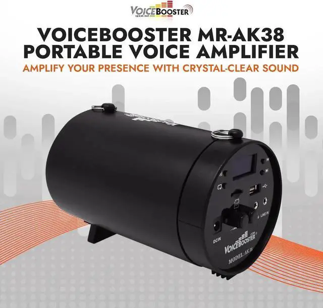 MP3, USB, SD & FM RADIO READY Equipped with an SD card slot, USB port, and MP3 input plus a built-in FM radio with automatic tuning and an LCD display for track/frequency info. Its extendable body boosts volume projection, and it can double as a standalone MP3 speaker when plugged into an external music sourceEVERYTHING YOU NEED IN ONE BOX This complete voice amplifier kit includes headset microphone, charger cable (US plug), MP3 cable (male to male 3.5 mm), MP3 line in port, microphone line in port, adjustable waist band, and carry bagLIGHTWEIGHT, WEARABLE & COSTUME-FRIENDLY Weighing 1.72 lbs, this portable personal voice amplifier can be clipped to a belt, or worn over the shoulder.