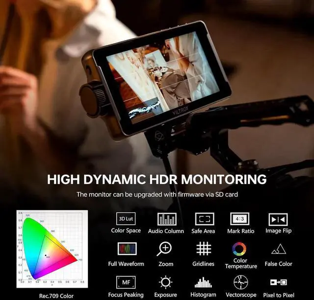4K HDMI LOOP IN & OUT: With a fresh design with improved UI, the camera monitor supports 4K HDMI loop input and output functionality, up to 4K 30Hz, 3840X2160p, 4096X2160p (30/25/24Hz) HDMI signals, allowing seamless integration with various camera systems and external devices. Plus, you can monitor audio using the 3.5 mm stereo headphone jack.