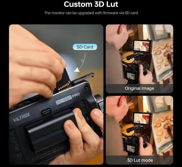 WHAT YOU GET: 1x DC-550 Pro Camera Field Monitor, 1x NP-F550 Battery, 1x Sunshade Hood, 1x VL-550 Cold Shoe Adapter, 1x Type-C Cable, 1x Standard HDMI Cable, 1x Mini HDMI Cable, 1x Carry Case, 1x User Manual, 1x Packing Box. provides a 1-year replacement service and friendly after-sales service support to all customers.