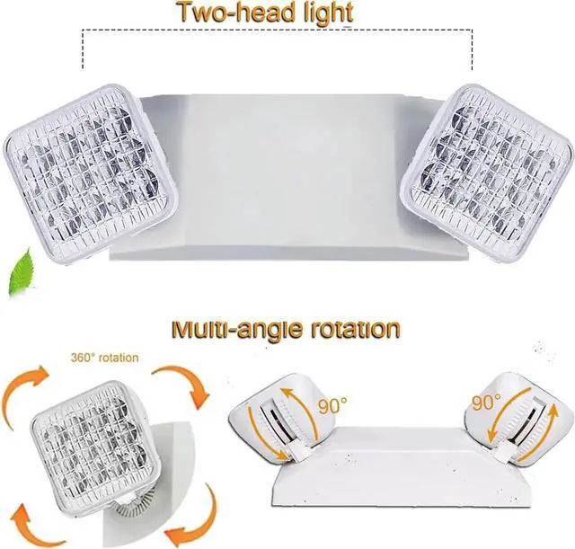 - MULTI-ANGLE LIGHTING: Adjustable Dual head, emergency light for home power failure use long-lasting, efficient ultra bright white LEDs. Each side of the emergency lamp has bright adjustable floodlights on the sign for maximum visibility. 360° ratation, the flexibility of the light direction allows you to point the lights at almost a 90 degree angle