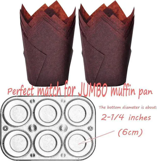 APPROPRIATE SIZE-With a 2-1/4" diameter bottom, our tulip baking cup is perfect for a jumbo muffin or cake plate. It is about 2-3/4 to 4 inches high and has a capacity of about 3-4 ounces.