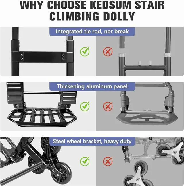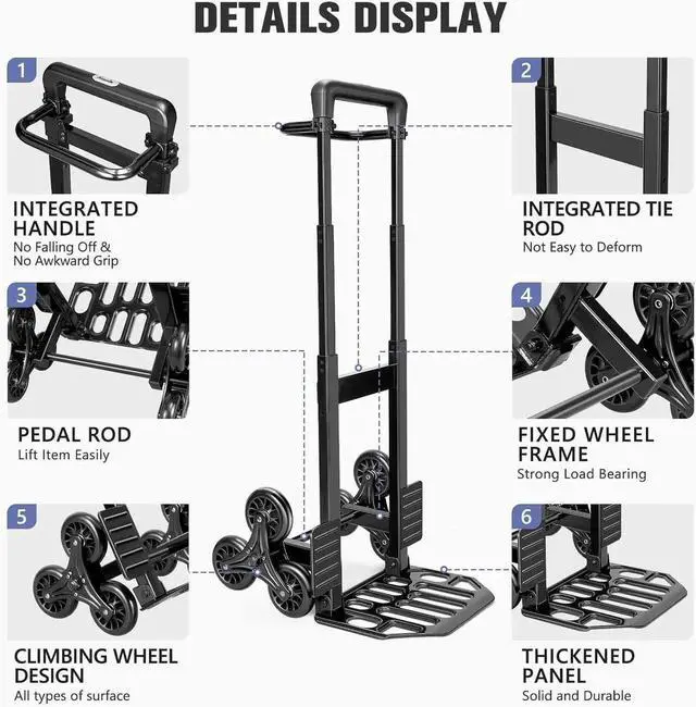 Wide Range of UsesThe stair climbing hand trucks widely used for warehouse, garden, construction site, hypermarket, office, etc. it can be used on all staircases, such as carpeted stairs, wooden stairs. If you are looking for an folding stair climbing cart, then stair climbing cart is your choice