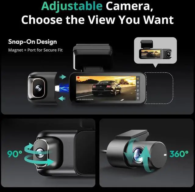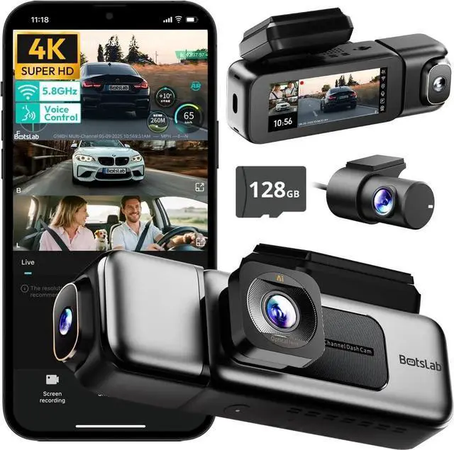 5.8GH z Wi-FiCar camera with WiFi 5.8GH z chip, this dash cam delivers blazing-fast transfer speeds up to 10 MB/s5x faster than conventional 2.4GH z. Instantly transfer 4K videos to your smartphone without lag, and export critical footage with one tap at accident scenes. Comes standard with a static-cling mount (residue-free & paint-friendly) and includes a 128GB SD card, ensuring ample storage for daily recording needs.